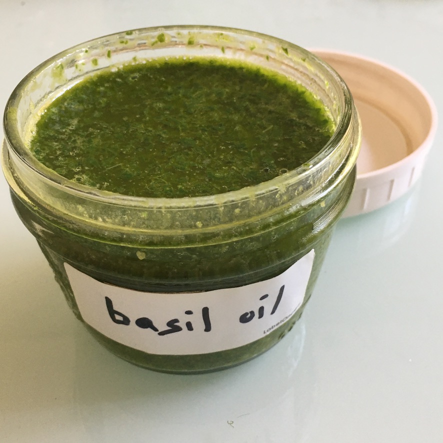 Store Basil Oil in small jars in the refrigerator. I am not sure how long it will stay fresh – that has never been an issue. Yield: app. 1.5 cups.