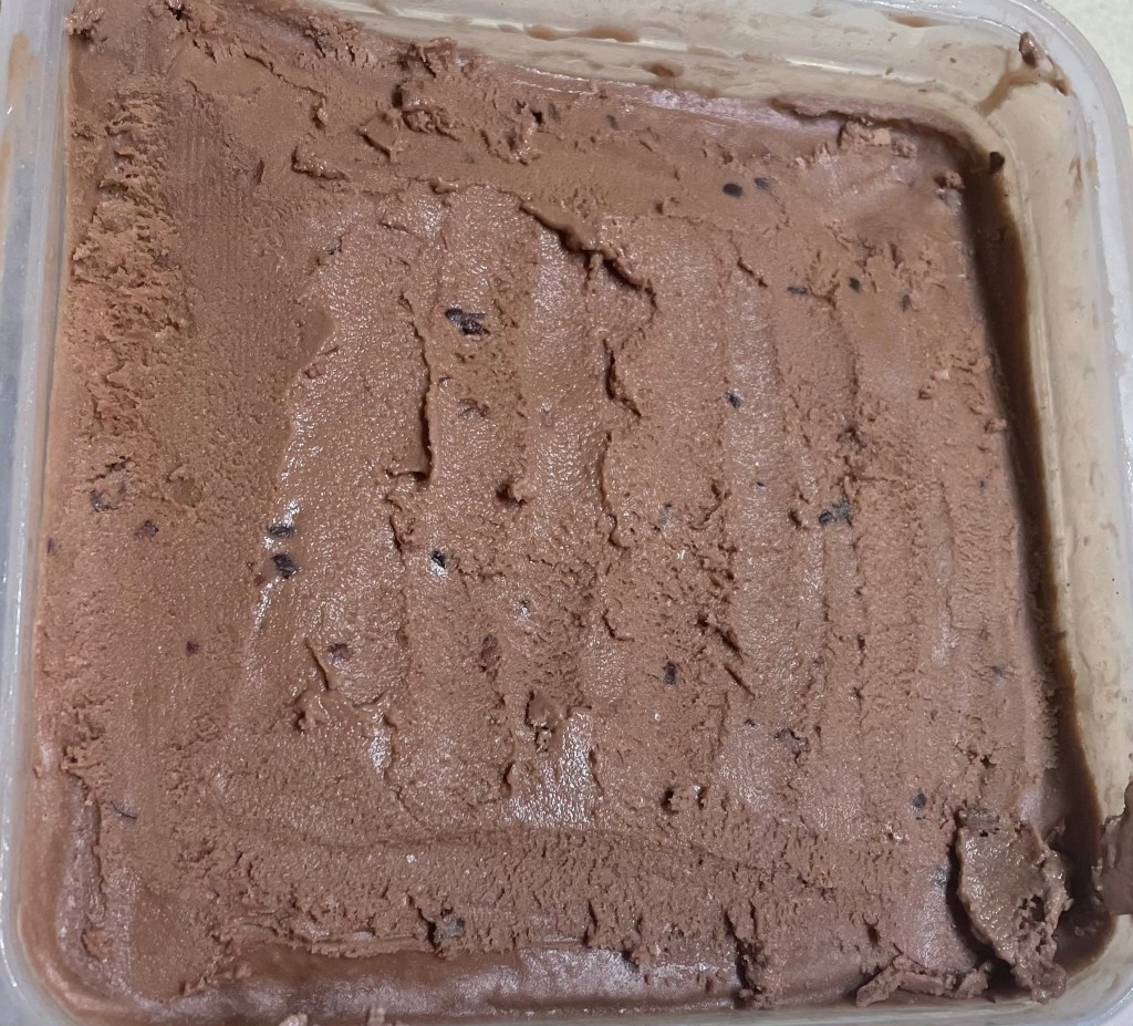 This afternoon I tried again and as I watched the ice cream come together I could tell it was going to be smoother. That was a positive sign. When I was moving it from the ice-cream maker to the storage container to put it in the freezer I could really tell that this time was different, in a good way. And of course I had a small taste. As the saying goes, the proof of the pudding is in the eating.