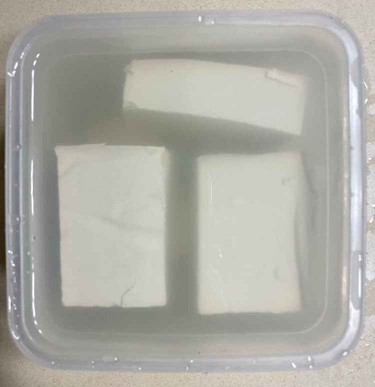 After I open the back to use some of the tofu, I shift the remainder into a storage container, taking care to ensure that it is fully submerged in water before refrigeration. If I don’t finish the remainder in a day or two, I change the water.