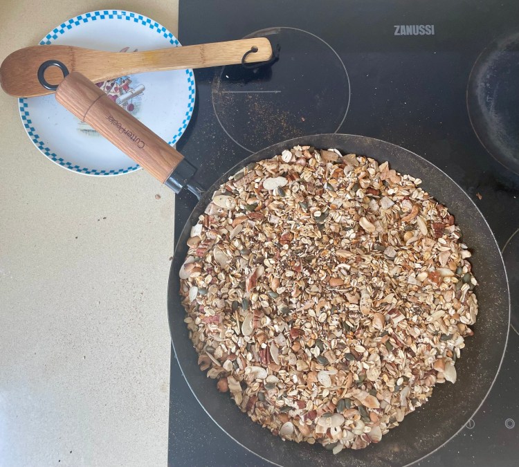 It’s almost time to switch from making conventional granola with rolled oats to quinoa for Pesach.