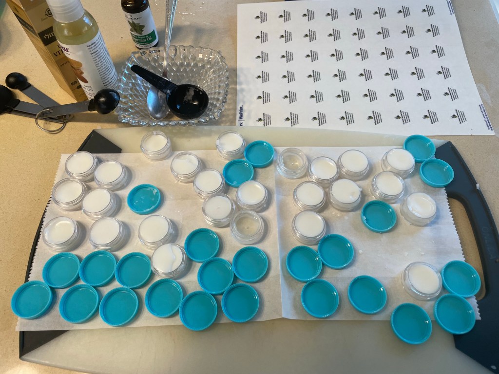 You also need small containers for the lip balm (though my husband Matt has suggested making “one big one”).