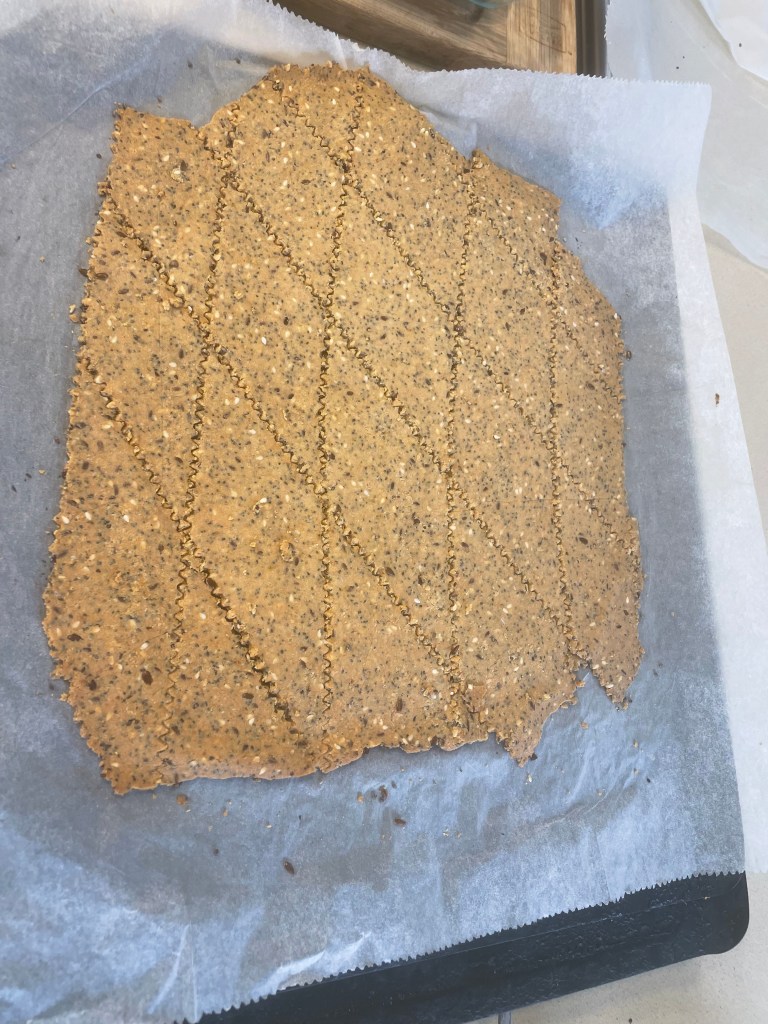 Other supplies you will need: 2 baking trays (flat trays work best here, ie without a raised edge), Baking paper, one big mixing cup or bowl, Pastry Cutter or Sharp knife to cut the crackers
