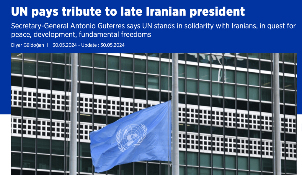 And, believe it or not, instead of confronting Iran’s domestic widespread human rights abuses and its role as the single greatest funder of global terror, Guterres actually led a tribute to the late Iranian President Raisi following his death in a helicopter accident in May 2024, :