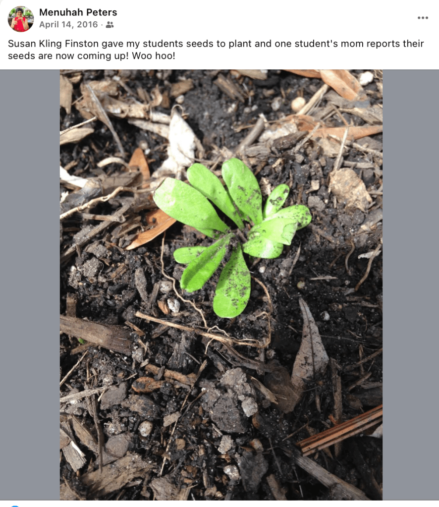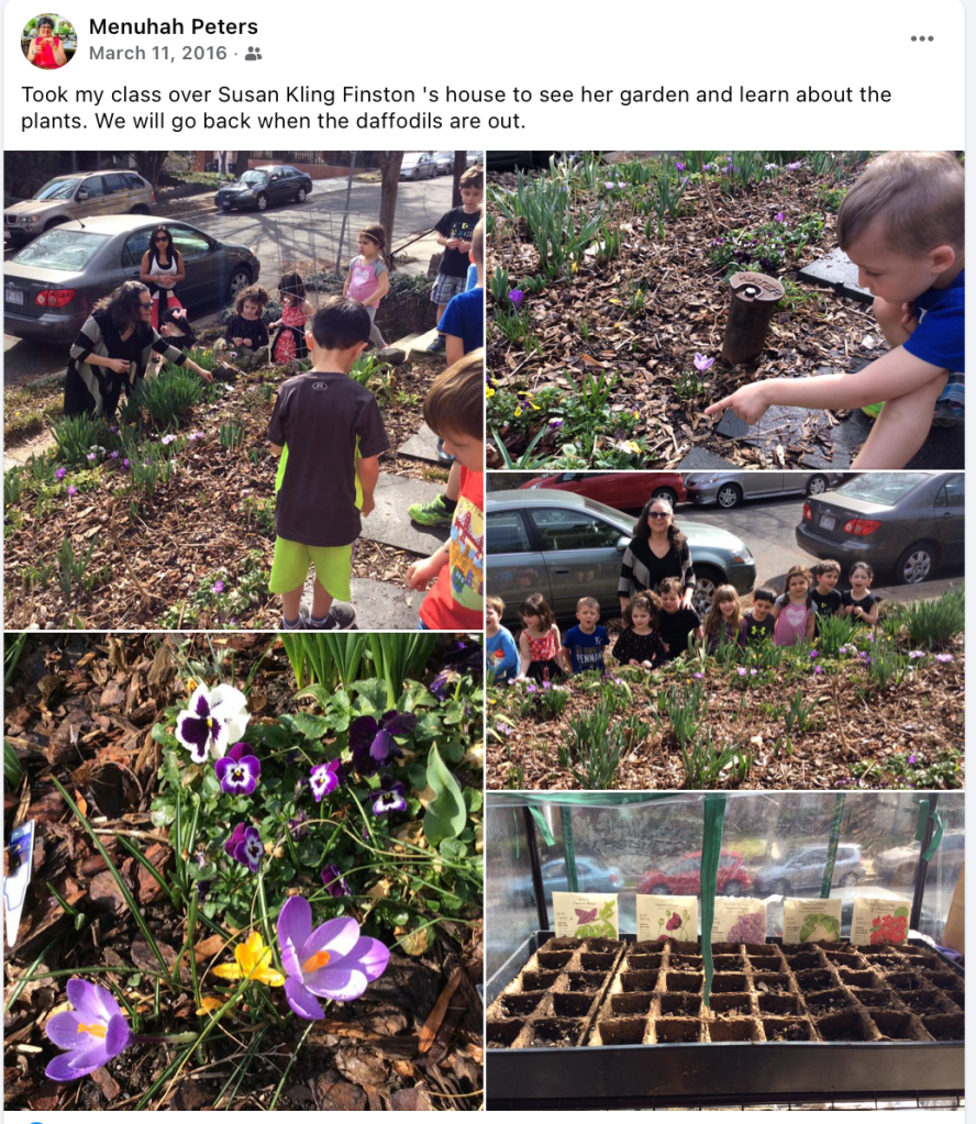 Menuhah made a huge and lasting impression on the world through her early education teaching and what she shared about it online (photos always shared with written consent). For Menuhah every setting was a classroom and every experience an opportunity for learning and teaching. I was fortunate enough that this included my garden.