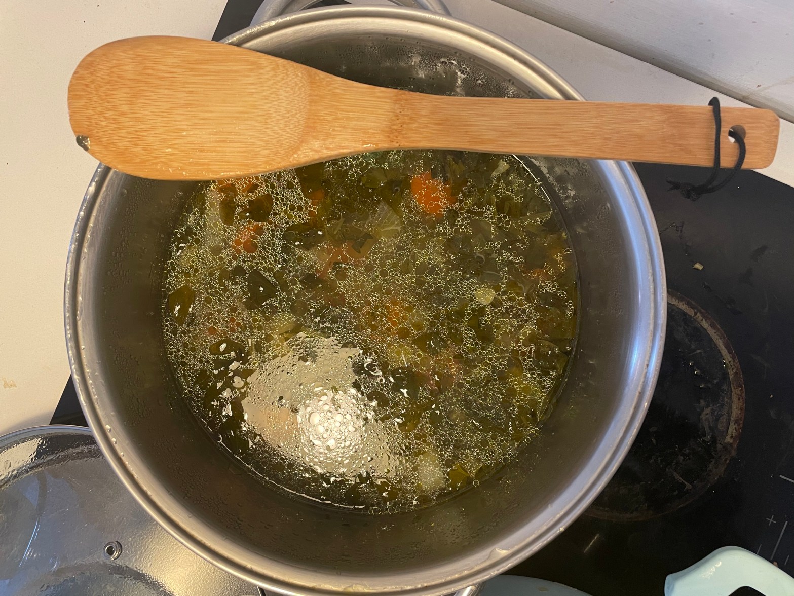 This soup got its name when we served it to an unexpected dinner guest on a Friday evening who thought that he was eating chicken soup (it tastes very similar to a traditional chicken soup, although it is completely vegetarian). We joked that it was a soup that makes even the chicken happy!